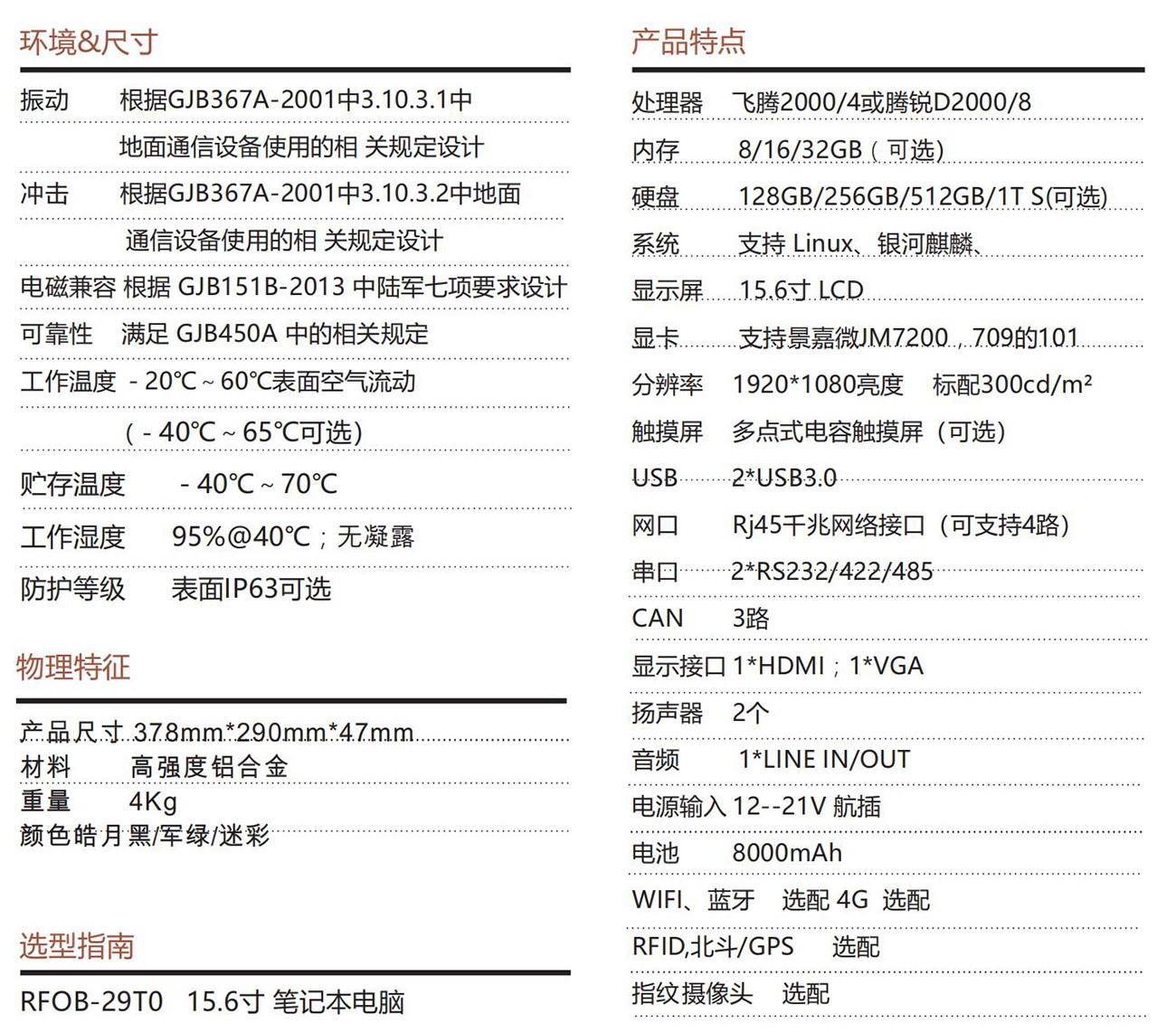 采用國產飛騰處理器FTD2000/8+ZX-200芯片組按國產 100%設計,具備豐富的外圍接口;設計了高效的散熱系統, 可顯著提高處理器的浮點運算性能,廣泛應用于軍事、野外操 作、工業領域的服務和操作、網絡的通訊和測試、高速公路收費等 領域。適合國防、公安、消防、交通、石油、勘探、船舶、煤炭等 行業。